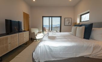 The beautiful wood floors and a kitchen equipped with high end finishes will have you wanting for nothing as you prepare your favorite dishes. With interiors that were decorated and designed by an internationally published designer Anil Kakar of Kakar House of Design , the main level living room is open and comfortable with a large TV and Wi-Fi throughout. Relax on the patio lounge area where you can relax and soak in the ever-changing views. With a main level ensuite bedroom and 2 more guest rooms on the lower level, you'll have plenty of room for everyone. Each bedroom feels like a luxury hotel suite. You'll wake up with breathtaking views each morning.