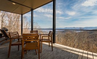 And there's plenty of outdoor dining and relaxing on two separate large outdoor balconies where you can sit and lounge, have your morning coffee or your evening cocktails while enjoying the magnificent view of the Blue Ridge Mountains.