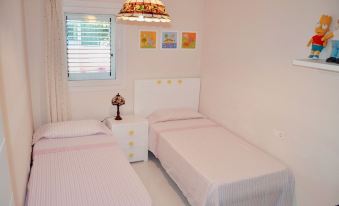 New apartment on the ground floor with a terrace of 60 m2 as brand new, consisting of 2 bedrooms with fitted wardrobes in both (1 double and 1 with two single beds), 2 bathrooms (1 with bathtub and 1 with shower), fully independent kitchen equipped with appliances and utensils and living room with 43 "LED TV. Wifi throughout the house. High quality: armored door, hot and cold air conditioning throughout the house, white lacquered interior doors, tilt-and-turn windows. Ample parking space included. 200 mtrs. from the beach: Urbanization equipped with two paddle courts, swimming pool for adults and children with lifeguard open during the summer, sports area with football and basketball.