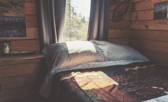 Have a relaxing stay at our off-grid studio style dry cabin. A quaint 12x12 log cabin nestled in the trees at the home of Wildthingz Dog Mushing, professional sled dog team of Iditarod and Yukon Quest dog Musher, Richie and wife Emily.