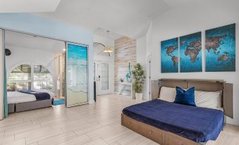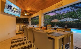 Some of the top features of this amazing 4 bedroom, 2.5 bathroom vacation home are a secluded backyard full of fun, a 40ft. long custom built electric heated saltwater Pool with spacious Spa, an outdoor kitchen, a 400 sq ft private beach and TV's in all bedrooms with Fubo TV, what more could you ask for? Oh.........there is more.....this centrally located home sleeps 10 with a California king sleeper sofa in the living room, 2 BBQ grills, A gourmet kitchen with huge island, an outdoor mini soccer field, ping pong table and luxury pool table in the game room. The split floor plan screams vacation luxuries with its bright style, and relaxing airy tones throughout with pops of vibrant color. From the moment you step foot into this gorgeous home through the glass double doors, you will never want to leave. This light and airy villa will be your favorite destination spot for years to come. With all the amenities available for you to enjoy, this villa will leave you and your loved ones with timeless memories that will last a lifetime.