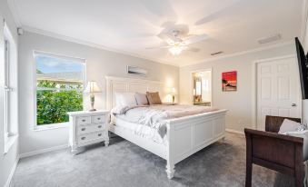 One of the highlights of this property is the private beach area where you can enjoy a good book with toes in sand and cocktail in hand. Relax and enjoy soaking up the sun on the new "in-pool" loungers or take a dip in the refreshing, heated, saltwater pool! Guests can also enjoy the fresh air in the screened-in lanai, where they can take in the views while staying protected from any bugs. The home is perfect for outdoor entertaining, with a new outdoor dining table with 6 chairs and a Tiki Hut bar with 4 chairs, TV and Bluetooth speakers! Perfect for afternoon cocktails and alfresco dining!