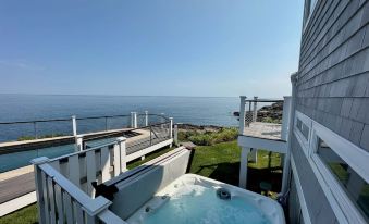 Indulge in luxury at our spacious oceanfront home in York, designed to cater to your every need. This stunning retreat features 7 bedrooms, 11 beds, 6 full bathrooms, and 3 half bathrooms, comfortably accommodating up to 18 guests. Enjoy a 180-degree view of the ocean and relax in the hot tub or seasonal pool. The expansive kitchen and dining area, with two tables seating 8-10 people each, is perfect for gatherings.
