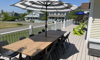 This was a great place for our large adult family. We loved the huge wrap around deck with plenty of lounging chairs, and also plenty of outdoor dining seating for all of us to eat outside. The kitchen was well appointed and there was a lovely welcome gift for us when we walked in. The listing was a little confusing. Under the Rooms & Beds layout section Bedroom 6 & 7 didn't exist. The listing is 5 bedrooms, as it states, and there are 3 King beds, A double bed under a twin bunk on the second floor, and a double futon and 6 twin beds in the 3rd floor bedroom, along with a pullout couch in the living room. Other than that the house was in a great location, a 5 min walk to Short Sands beach and 15 min walk to the Nubble lighthouse. An easy drive to route 1 or 95 to go on excursions. The neighborhood was quiet with very few cars. We had a wonderful time and would stay here again.