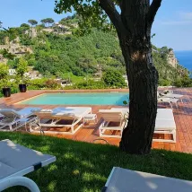 Ottima posizione a 5 min dalla mitica Piazzeta . Colazione Eccellente servita sia in camera che nel bellissimo giardino o a bordo piscina. Camera grande in stile Caprese. Staff cortese e sempre disponibile