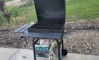 Charcoal grill (charcoal not provided) and portable outside table provided. Wood for the fire pit is not provided.