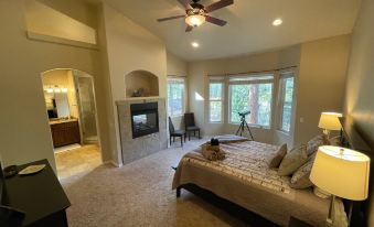 This house has all the amenities you might want: Fully stocked beautiful kitchen, 3 car garage (bring the toys), space to sit and enjoy the views, high speed wifi (150+ Mb/s), fireplaces in both living areas and main floor master, gas grill and picnic table out back, and a play fort for the kiddos and lots of space to spread out. All of this minutes from everything Colorado Springs, Woodland Park and the surrounding area have to offer