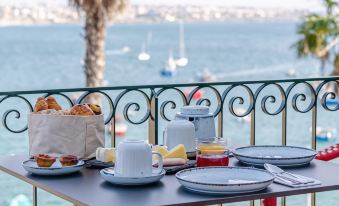 Close to everything but quiet and relaxing at the same time. Beautiful view from our room of the coast line and boats anchored in the water. Breakfast was a good selection and staff was friendly.