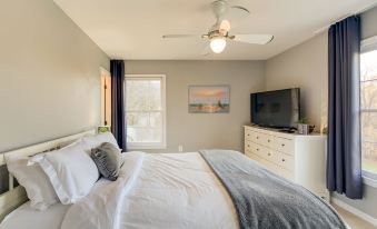 The Main House contains a Game Room, Projector Screen Movie Room, Dining Room, an Indoor Bar, a lower level Kitchenette, an outdoor Hot Tub, and a light-filled, open-concept Main Level. The expansive decks outfitted with grills, propane fire pits, and cozy chairs allow you to soak in the fresh air and river views. The Estate also contains a pool with an adjacent Tiki Hut for lazy afternoons along the Potomac River. You’ll find a shed full of outdoor games, an assortment of kayaks available for use during your stay, as well as a sports court for basketball, tetherball, and pickleball. Potomac Overlook Farms is truly a vacation destination designed to bring you closer to the ones you love.