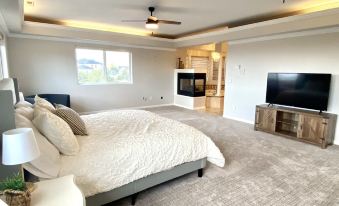 Stunning 8-bedroom, 9 bathroom, 8200-sq ft mansion in Cedar City. Come relax in our private pool, let the kids enjoy the playground, enjoy our movie theater room that seats 25, a pool table, ping pong table in the basement, and take a bike ride on the bike trail right behind the home. The home has 8 TVs equipped with Roku! We allow up to 30 guests.