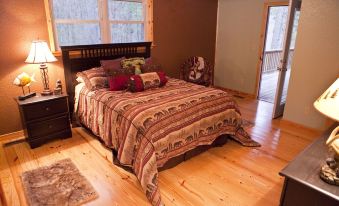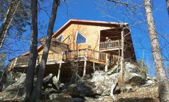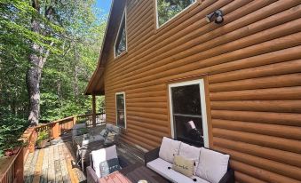 The interior of the cabin is extremely comfortable with two master suites - master with new king size bed, and upstairs bedroom, with a queen size bed and private bathroom. The upstairs,also, has loft bedroom, with a regular bed and a twin bed. The downstairs bedroom has French doors opening onto the back porch with a wonderful view of the Mountains, while the upstairs suite has it's own private balcony. So be ready to totally Disconnect , however, don't worry we have WIFI and Direct TV. FYI- Our internet is rural, and only meant for checking social media and e-mails., NOT for streaming games, videos and movies, !