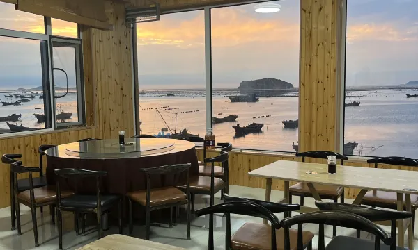 類似於漢庭酒店的環境設施,床稍微硬一些,海邊壘出的院落,坐在院子裏欣賞海上漁場。吃的鄉村口味裏很好的,價格可以接受(圖片有菜單),量是真足的。老闆禮儀正好。