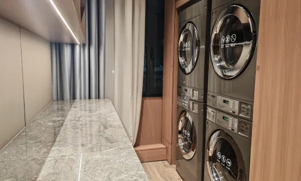 接著説洗衣服,四台洗衣機,一台維修,兩台不開,衹有一台可以使用,烘乾機也一樣,,我深色淺色分開洗,就衹能等,一次一次洗,一次一次烘,這也就算了,,問洗衣房的阿姨有沒有洗衣袋,答沒有,問能不能再開一台洗衣機,答你等這波洗完再洗下一波!行,然後我的圍巾和毛衣要冷水洗,不然縮水,結果那大姐這時候來了個痛快的,我剛要按冷水,她一把給我按了温水,我急忙説我要冷水!!!結果大姐這時候讓我自己等,等機器自己停,再重新洗,然後她走了不管了!?!我鼓搗半天根本沒法停,衹能等洗完,然後冷風烘到半乾,拿回房間抻了一晚上也不行,最後我的圍巾短了一節,毛衣直接縮水,我真是要氣死了!