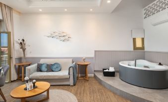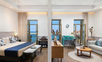 suite con una camera da letto, vista mare e vasca idromassaggio