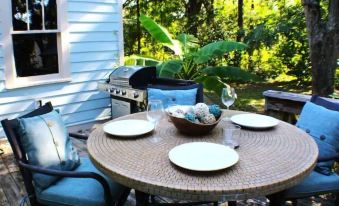Two cottages on the property, so if you have more people then there may be availability to house your entire group. The home is located on Folly Road so there is a small amount of noise associated with that, however that is a small price to pay for the convenient location so that you can get to wherever you need to go quickly and easily. Our rental is a peaceful oasis in a prime location set back on a deep lot surrounded by trees and greenery on 3 sides.. The craftsman style cottage front porch is a wonderful place to relax and drink a coffee or tea as you watch cars with surfboards on top head to the beach for the day. As you enter the house there is the master bedroom on your right with a private bathroom and a smaller bedroom on your left with a bathroom that is shared with the rest of the house. A couple of steps further will show the open floor plan where the living/dining/kitchen is located. This is a chef’s kitchen, designed and built by a true “foodie” with a deep respect for the art of food preparation. A sliding glass door opens to a deck on the rear of the home with a table and a grill, and a fire pit is also available a few steps beyond that. Additionally, there is a laundry room with full size washer and dryer. The house has 3 smart tv's ready for your favorite shows(WI-FI provided) Living room sofa folds out with a queen foam mattress. Our kitchen is fully stocked with dishes, silverware, and basic cookware. Everything needed to prepare meals at the house. Coffee maker, hair dryer, iron, extra linens provided, detergent and propane for grill included.