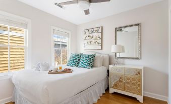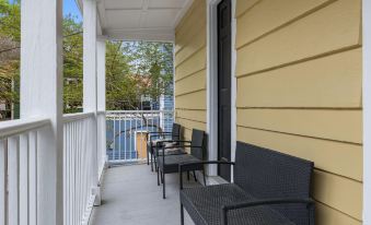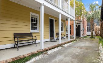 • Relaxing Front Porch: Unwind on the front porch chairs, basking in the pleasant Charleston weather and savoring the delicious aromas from D'Alessandro's pizzeria across the street.