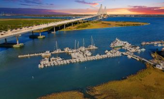 Enhance your stay with nearby amenities including waterfront dining and refreshing beverages at the Island Cabana Bar. For adventurous guests, the marina offers convenient boat rentals, allowing exploration of Charleston's beautiful waterways.