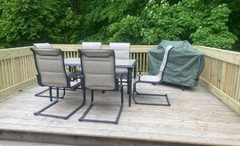 Beautifully remodeled home that offers everything you need for an enjoyable getaway! Full kitchen, washer/dryer, dishwasher, TV/internet, Game room and outdoor firepit. The back deck overlooks the wooded back yard while the front yard offers a great view of the country side which includes patio furniture and BBQ gas grill.