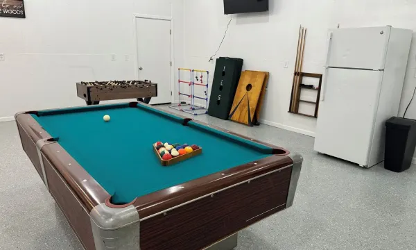 The detached garage was recently turned into a Heated Game Room. Enjoy the space on a rainy day or in the winter time. Play some pool, foosball or cards while watching the game on the TV. There is also a refrigerator to keep your beverages cold.About pets:No pets allowed.About checkOut:Check out before 11:00 AM.About children:Children allowed: ages 0-17.About checkIn:Check in after 4:00 PM.About smoking:Smoking is not permitted.About minBookingAge:Minimum age to rent: 21.About events:No events allowed.