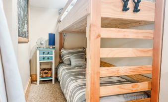 Relax and re-coop at The Coop Cottage! This bright in-town cottage is nestled on a large corner lot & a 5 minute walk to downtown Charlevoix. Non-shedding Pet Friendly with an unbeatable location. The coop cottage has one bedroom with a queen bed, blackout curtains and an en-suite bathroom. There is a corner off of the sofa room with comfortable, but small bunk beds. The bunks are 6ft long. The space ideal for a couple or a family with small children. Adults have slept in the bunks comfortably, but please make sure you take note of the bunks being 6ft before booking.