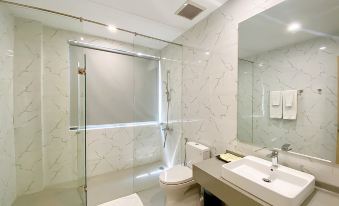 Phòng mới sạch sẽ , nhân viên lịch sự , đầy đủ tiện nghi ,có dịp sẽ quay lại ….