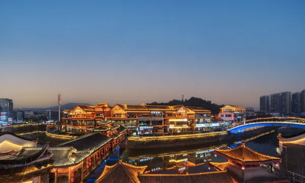 Ling Xi Deluxe River-View Double Bed Room [Ancient Street View & Panoramic Floor-to-Ceiling Windows]