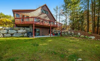 Offering plenty of space for everyone to spread out and relax, this serene and secluded, three-story lake house is the ideal getaway for all ages, no matter the season. Set right on Friends Lake, this recently built home blends a cozy Adirondack atmosphere with updated amenities from top-to-bottom. Start your days with breakfasts prepared in your well-equipped, full kitchen complete with stainless steel appliances and a breakfast bar. Then, dine together at the adjacent table for six before settling into one of two distinct living areas - one on the main level with a gas fireplace and a second on the lower level with a large sectional sofa and easy backyard access. Additionally, this home features a furnished sunroom, a deck overlooking the lake, a seasonal private dock, and a stone firepit with granite benches.