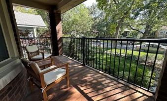 Outside, during warm weather, residents can enjoy the back porch with patio furniture and an outdoor grill, perfect for dining and relaxation. The apartment also features a beautiful garden/yard area and a fire pit for cozy nights.