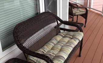 Come & stay in this unit that feels like an upscale hotel with all the comforts of home. There are two LCD TVs - one in the living room with a DVD player and one in the Queen Bedroom. The kitchen has granite countertops & brand new appliances including a stainless steel refrigerator. The tv stand in the living room has a gel fuel fireplace. There are sliding doors to the deck from the living room and the Master Bedroom with breathtaking sunset views!