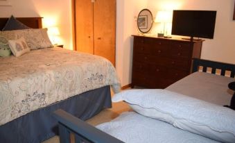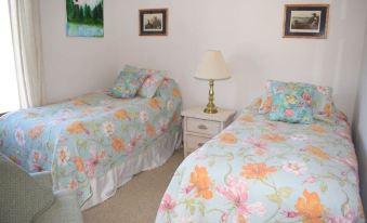 The front bedroom has a full bed, a twin sleeper, and private access to a second screened porch.
