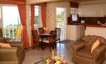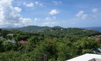 Ocean View Sunset Apartment is self-contained, situated on Lower Morne Fortuné on the outskirts of Castries. This comfortable two bedroom/ one bathroom apartment is fully furnished with a well-equipped kitchen, furnished sitting/dining room; the porch overlooks the verdant tropical surroundings and the calm Caribbean Sea.