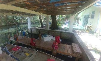 Lovely, beautifully furnished 1 bedroom 1 bath cottage for 2 adults. Perfect for your honeymoon or romantic getaway, but if needed there is room for 2 small children on the living room sectional. You are overlooking a Crystal clear waterway that leads to the Halls River. The River runs thru several lakes on its way to the Homosassa River then to the Gulf of Mexico. Good fishing in crystal clear water right off your patio. Bass, Bluegill, Mullet, Porgy, Sheepshead & stingrays are some of many different varieties that frequent the area. The cottage is a great area for sight seeing, manatee, porpoise, otters, turtles and stingrays frequent the waterways off your dock. Several great blue heron, ibis, many bard owls and wood storks also frequent your back yard. Just recently we’ve had a white peacock that visits every couple of days. We’ve named her princess. She is just beautiful !! There are also a great variety of birds in the area and most of our waterways are bird sanctuaries . You have a dock for a small boat and plenty of room to park your boat and trailer. The cottage comes complete with life vests, 4 person paddle boat, 2 kayaks and a canoe. A lovely yard that is fenced on 2 sides has water on the other two sides. A quiet and charming area to relax.About pets:Pets allowed: dogs and cats less than 50 lbs per pet (limit 2 pets total).About checkOut:Check out before 11:00 AM.About children:Children allowed: ages 0-17.About checkIn:Check in after 2:00 PM.About smoking:Smoking is not permitted.Smoking only allowed outside.About minBookingAge:Minimum age to rent: 21.About events:No events allowed.