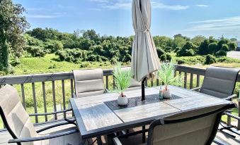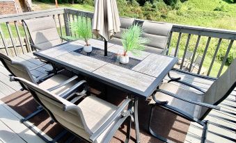2200 sq.ft home, comfortable, home theatre w/movie candy, popcorn and colas, foosball & games. Warmly decorated, open floor plan, 3bd, 2b w/ large porch, furnished upper deck with nightlights, no access from below for your safety and peace of mind. Backyard view overlooks a beautiful greenery w/ local wild life.