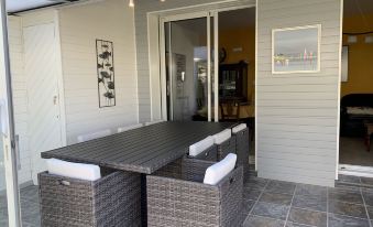 You can have lunch in the Dining Room, in the Veranda or in the garden where you have tables and chairs sheltered by a deported parasol. We provide a Weber Gas Barbecue for your grilling.