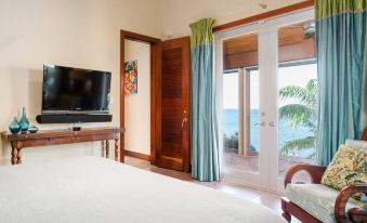 La facciata della tenuta, un'armoniosa miscela di design contemporaneo e stile caraibico, accoglie gli ospiti in un mondo di raffinatezza e relax. Quando gli ospiti entrano, vengono accolti da un ampio foyer adornato con opere d'arte squisite, che danno il tono alla grandiosità che li attende.