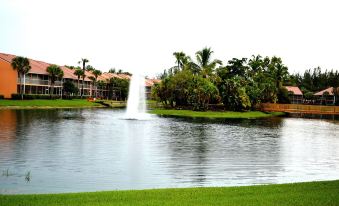 This 1,345 sq. ft. first floor, end unit (no stairs to climb) is a must see offering gorgeous views of the lake from the living room, master bedroom and lanai. Take full advantage of the lanai’s comfortable patio seating and chaise lounge, allowing you to relax and dine outside. Inside you will find the home tastefully furnished with everything you need to sit back, relax and enjoy your vacation! The spacious master bedroom offers a king size bed with a walk in closet as well as access to the lanai. The 2nd bedroom offers two twins (that can easily be pushed together if needed) and the family room has a couch with a pull out queen bed (allowing a family to sleep up to six). The living room and dining area are both inviting and comfortable with all new furnishings and decor. The living room has a 50 inch flat screen to help you relax on those extra hot days. The kitchen is equipped with all of the basics you would need to create home cooked meals. No need to bring a lot of clothes as there is a washer/dryer in the condo.