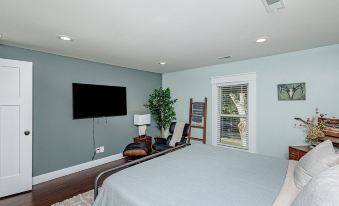 Enjoy an elite experience at this centrally-located, well appointed historic home offering the best of indoor/outdoor life. If versatility and quality lodging are important to you and your visit to Columbia, you have found the perfect home. Offering 2 bedrooms, king size beds, luxury linens, flat screen TV'S, wireless internet, gas stove in the modern kitchen and best of all--true walkability to downtown Columbia, MU, the Katy Trail and Stewart Park. Less than a mile to campus and downtown.About pets:Pets allowed: dogs and cats less than 50 lbs per pet (limit 2 pets total).Dangerous Breeds will need own insurance.About checkOut:Check out before 11:00 AM.About children:Adults only.About checkIn:Check in after 2:00 PM.About smoking:Smoking is not permitted.About minBookingAge:Minimum age to rent: 33.About events:No events allowed.