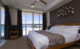 It’s our 4 th stay at this site and we are very happy to stay again. Comfortable beds and clean. Great views, parking and facilities available. Surf Club across the road, and many restaurants downstairs. Love the hosts and all over a 5 experience