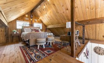 Upstairs - 1 queen bed in the loft. Views of the lower living area. A truly unique experience to stay here!
