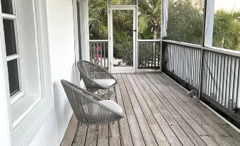 The master bedroom has a queen size bed with a private bathroom and shower. The two other bedrooms have a queen size bed and a king size bed with shared bathroom. This bathroom has a washer and dryer. Upper decks and patios with screen in porches which provide a nice view of the ocean and canal.