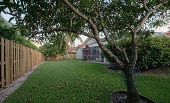 Situated a 3-minute drive from Coral Springs downtown, the house is close to supermarkets, dining, stores, and more. This peaceful retreat offers our guests all the privacy, they require with plenty of space to unwind. The thoughtfully designed villa blends easily with the tropical environment. The minimalist interior uses materials such as wood floors, neutral tiles, and white linen, for a fresh and luxurious ambience.