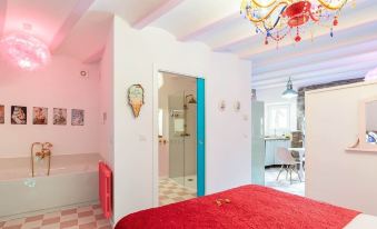 I prezzi di The 50's Suite. Barbie's summer house. Bathtub and jukebox sono soggetti a modifiche in base alle date, al regolamento dell'hotel e ad altri fattori. Per visualizzare i prezzi, cerca le date in cui desideri soggiornare in hotel.Quanto costa soggiornare presso The 50's Suite. Barbie's summer house. Bathtub and jukebox?