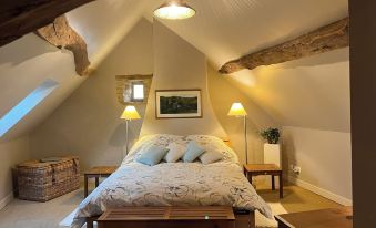 This delightful house has it all - oak beams, flagstones, underfloor geothermal heating, log fire, French doors, south facing garden, large bedroom and bathroom with shower and bath; linens and towels provided, bed made up. It's the perfect romantic getaway for two people. From the garden you can see the sun preparing to set behind the trees beyond, and listen to loads of birdsong. There is a parking space outside the front door on the 'village green'. The downstairs is one large open-plan kitchen/living/dining area; the walls have all been beautifully plastered and lime-washed with a warm but very light shade of honey. Upstairs, exposed oak beams throughout the bedroom and mezzanine enhance the recent renovation of this charming property. Our stonemason and estate agent now tell me that they both regret not having bought the house for themselves!About pets:Pets allowed: dogs less than 50 lbs per pet (limit 2 pets total).About checkOut:Check out before 11:00 AM.About children:Children allowed: ages 0-17.About customRules:We kindly request that guests do not smoke inside the house.