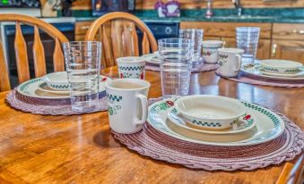 The living room has a 50 inch flat screen TV ,a checker table and a gas fireplace for the family to curl up to on those cold snowy nights. The kitchen is equipped with all the appliances, cookware, and tableware you'd expect from a home away from home. In addition, there's a charcoal grill out back to cook up those steaks and hamburgers.