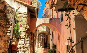 Sehr schönes im alten Dorfkern von Costarainera gelegenes und modernisiertes Rustico. Herrliche Dachterrasse mit Blick über Olivenhaine bis zum Meer. Die vielen Treppen machen fit.