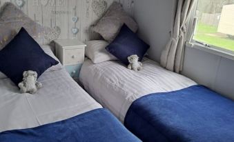 Beautiful 2 bedroom static caravan, sleeps 5 (6 with cot), lovely home from home holiday let with a larger than normal master bedroom and bathroom. Own parking space. Short walks to the beautiful Thorness Bay that’s visible from the caravan.