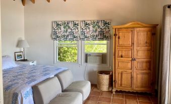 This charming, east-facing cottage is perfect for couples seeking peace, privacy, and the calming sound of ocean waves. Inside, you’ll find a cozy space featuring a king-size bed, smart TV, air conditioning, and a well-stocked kitchenette. Stay connected with Wi-Fi and enjoy peace of mind with a whole-house solar system, battery backup, and a portable generator to ensure uninterrupted power throughout your stay.
