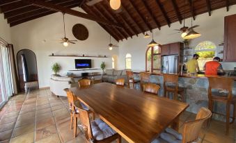 Villa DiCroce, formerly known as Hart Bay Ridge Villa, is an architectural gem under new ownership. This spectacular villa is situated overlooking Hart Bay and Chocolate Hole on the southern side of St. John. Just a quick ride to Cruz Bay or to the gorgeous white sand beaches on the north side of the island. This house has a refreshing pool with a large Chicago brick style pool deck, a large veranda and a back yard with hammocks, chaise lounges - a perfect spot for bocce or corn hole. This house has a large high ceiling great room with fully equipped kitchen, kitchen bar, mahogany dining room table and living room. There are 3 master en suite bedrooms with walk-in closets, private balcony or deck and bathrooms. There is a constant breeze that runs through the house which is refreshing. Sleep to the sounds of the ocean surf from Hart Bay. The majestic views are magnificent from St. Croix to St. Thomas. The sunsets are spectacular and the twinkling is magical as lights illuminate the islands. This is a very comfortable house that has its' own driveway, with arched windows and doorway, mahogany, native stone and Mexican tile throughout. There is also a media room with a wet bar, office and laundry facilities. We have a big grill on the outside pool patio. We provide beach towels, beach chairs, beach umbrella (and another style too) and beach coolers to make it easy for you to go to the beach! If you are coffee drinker, we have lots of options including a drip coffee maker, French press, grinder for your coffee beans and the original Nespresso machine. Come see for yourself, you won't be disappointed! It's simply stunning here!About pets:No pets allowed.About children:Children allowed: ages 13-17.The house does not have any child safety locks..About smoking:Smoking is not permitted.About events:No events allowed.