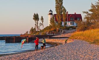 L'aeroporto più vicino è Manistee County Blacker Airport, che dista 51,7 km dall'hotel, in macchina circa 46 min..Come arrivo dall'aeroporto più vicino a Poplar at Lake Bluff Preserve-Spectacular Lake Michigan Views-Sleeps 8?