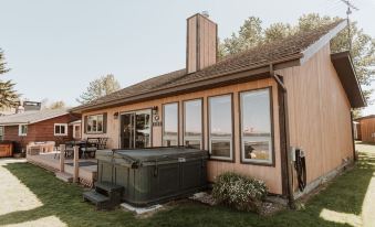 Indulge in lake life at it's finest. Enjoy a relaxing soak in the hot tub or a memorable evening by the fire just steps away from the water at Pigeon Lake. Feel comfortable preparing meals in our large, well equipped kitchen. Sleep in comfortable private bedrooms. Relax with a soothing drink on the wrap around deck. This cabin is located 5 minutes from The Village at Pigeon lake where there are restaurants, grocery/liquor stores, golf courses and a full high end spa.About pets:No pets allowed.About checkOut:Check out before 11:00 AM.About children:Children allowed: ages 0-17.About checkIn:Check in after 4:00 PM.About smoking:Smoking allowed: in designated areas.About minBookingAge:Minimum age to rent: 9.About events:Events allowed: family gatherings and birthday parties.Maximum event attendees: 8.